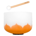 Die Crystal Singing Bowl 10″ Lotus hat einen Durchmesser von ca. 25 cm und ist aus Quarzkristall gefertigt. Das verwendete Material erhält durch einen besonderen Herstellungsprozess, bei dem Glas eingeschmolzen und durch eine Zentrifuge in die gewünschte Form gebracht wird, hervorragende Klangeigenschaften. Optisch abgerundet wird das Instrument durch ein schickes Frostglas-Design mit rauer, weißer Oberfläche und einem farbigen Lotusdesign.