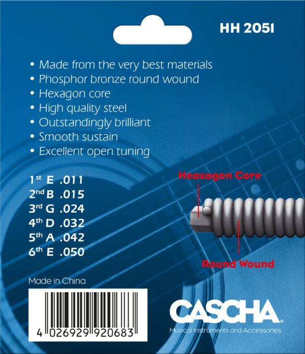 CASCHA Premium Saiten für Western-Gitarre sind ideal für Gitarristen, die Wert auf Qualität und Klang legen. Die Wound-Saiten bestehen aus hochwertigem Phosphor Bronze, umwickelt um einen sechskantigen Stahldraht. Das Resultat ist ein beeindruckendes Klangerlebnis: Sowohl klare und kräftige Höhen als auch warme und volle Bassfrequenzen begeistern jeden Musiker. Die gute Bespielbarkeit sorgt für maximalen Spaß beim Üben oder bei Auftritten. Die ausbalancierte Abstimmung der Saitenspannung sorgt für eine hohe Stimmfestigkeit in jeder Lage. Die CASCHA Western-Gitarrensaiten sind griffig und erzeugen einen ausgewogenen Sound. Wie alle CASCHA Produkte werden die Westerngitarren-Saiten unter höchstem Fertigungsstandard produziert, um lange Lebensdauer, hohe Qualität und maximalen Spaß am Spielen zu gewährleisten.