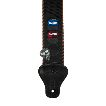 Der Cascha Gitarrengurt ist sehr leicht und besteht aus Polyester und weicher Baumwolle. Der Gurt überzeugt nicht nur durch die hochwertige Verarbeitung, sondern auch das zeitlose Design in klassischem Braun. Die Enden bestehen aus schwarzen Leder. Dies erhöht die Haltbarkeit.