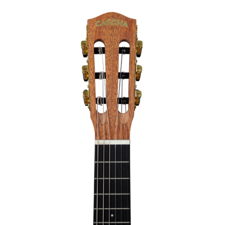 Korpus und Hals der Cascha Guitarlele Mahogany bestehen vollständig aus Mahagoniholz, einer der beliebtesten Holzarten im Gitarrenbau mit einem warmen, ausgewogenen Klang. Griffbrett und Brücke sind aus dunklem Palisander gefertigt, was einen schönen optischen Kontrast ergibt. Zudem ist das „Red Tortoise“-Binding an Korpus und Rosette ein ganz besonderer Blickfang und verleiht der Cascha Guitarlele ein klassisches und sehr edles Aussehen.
