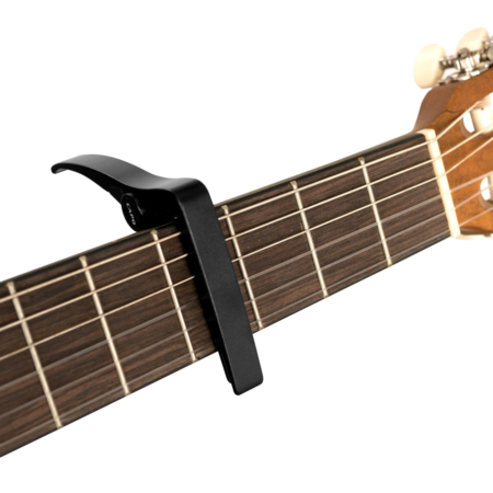 Ein Kapodaster ist ein unersetzliches Hilfsmittel für jeden Gitarristen. Mit ihm kann man z.B. die Tonhöhe der Gitarre an die Stimmlage eines Sängers anpassen, ohne den Einsatz komplizierter Barrégriffe. Damit der Kapodaster gut funktioniert, müssen Qualität und Bauweise stimmen, so wie beim Cascha Capo. Seine hochwertige Feder aus Qualitätsstahl sorgt mit otpimalem Druck für brillante Töne und eine perfekte Intonation beim Spielen. Die stabile Metallkonstruktion sitzt in jeder Lage perfekt und ist an den Auflageflächen mit Silikon beschichtet. So werden Hals und Saiten der Gitarre perfekt geschützt. Das Cascha Capo lässt sich mit nur einer Hand schnell und einfach anbringen und wieder abnehmen. Dieses Modell ist für Western- und E-Gitarren geeignet.