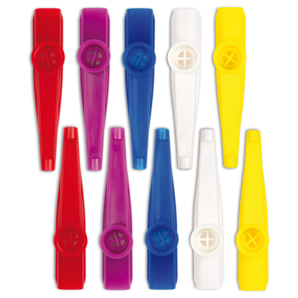Das hochwertige Blasinstrument aus hygienischem Kunststoff überzeugt durch sein auffälliges Design. Das robuste, langlebige Material sorgt für viel Spielspaß über einen langen Zeitraum hinweg. Das Cascha Kazoo Set enthält Kazoos in rot, gelb, blau, lila und weiß.