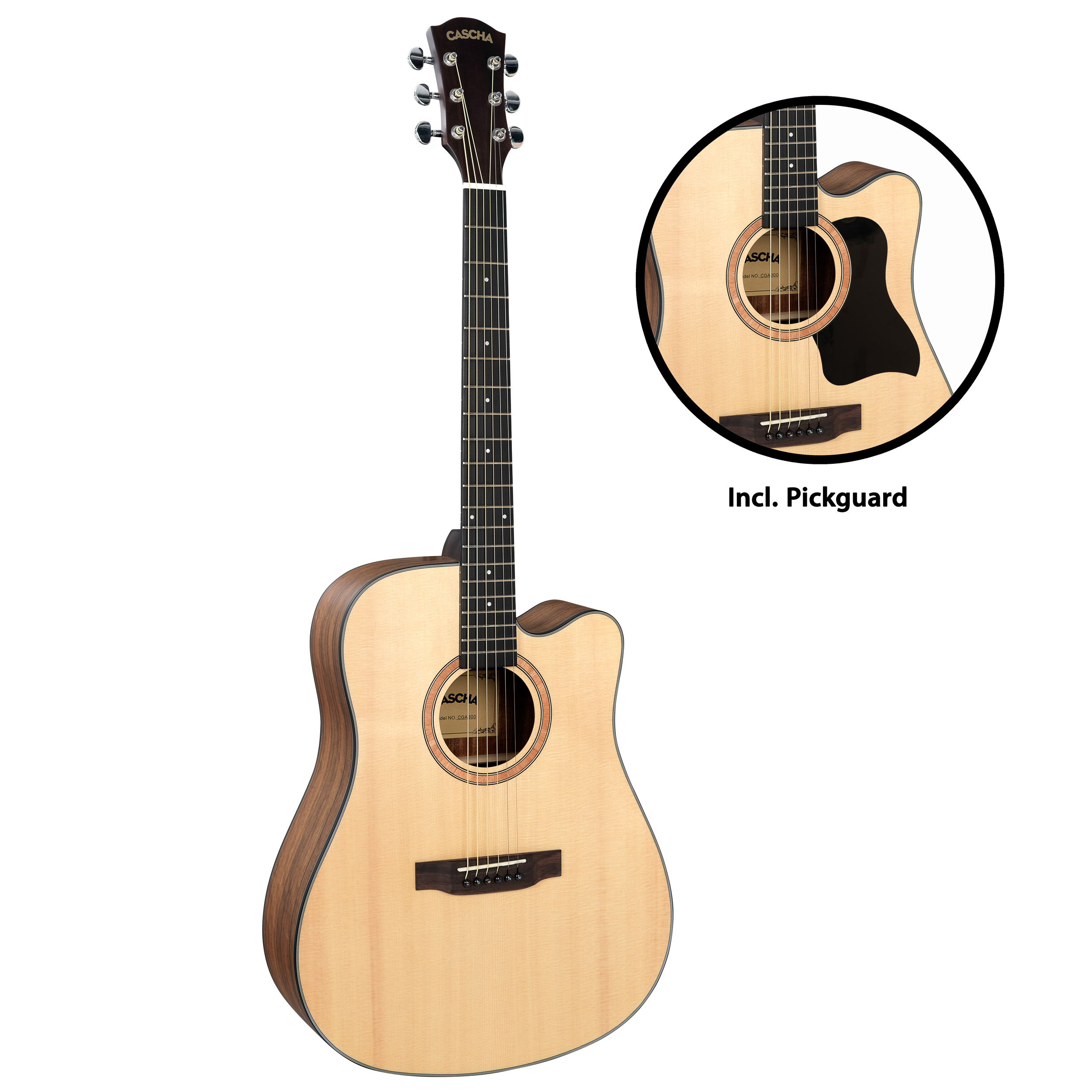 Die CASCHA Performer Series CGA300 ist eine Akustikgitarre in Dreadnought-Form mit Cutaway. Ihr vergleichsweise großer Korpus liefert einen lauten, durchsetzungsstarken Sound mit kräftigen Bässen, weshalb sie sich vor allem für Stilrichtungen wie Bluegrass, Blues und Folk hervorragend eignet. Die CGA300 aus der Cascha Performer Series ist jedoch ein echter Allrounder und somit auch für alle anderen musikalischen Ausflüge der ideale Begleiter.