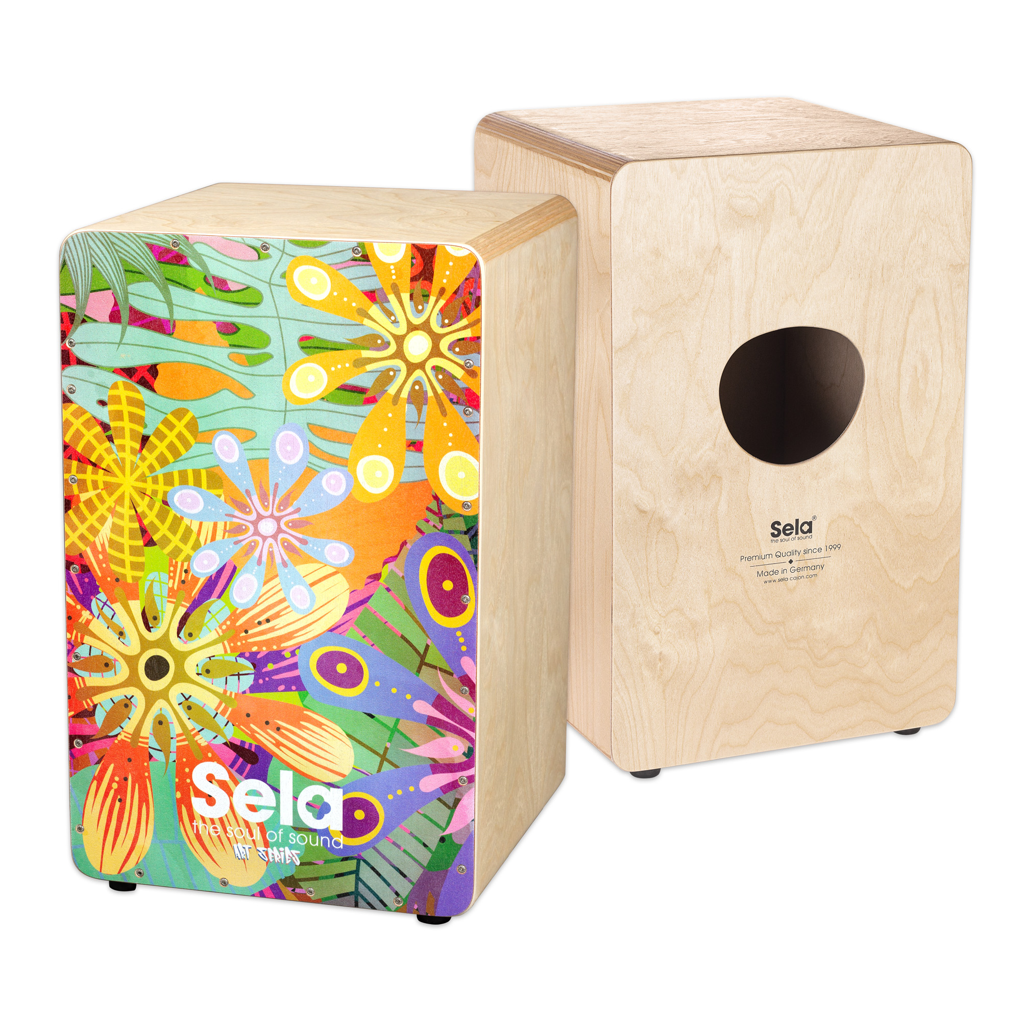Mit dem Sela Flower Power erhältst du nicht nur ein Cajon mit einem tollen und auffälligen Spielflächen-Design, sondern auch eines, das alle Eigenschaften eines Profi-Cajons bietet: Und das, zu einem unglaublichen Preis! Sela beweist damit, dass bei Sound, Qualität, Ausstattung und Design keine Kompromisse gemacht werden müssen.