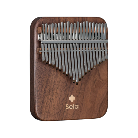 Die Sela Kalimba 21 Black Walnut besitzt einen massiven Korpus aus schwarzem Walnussholz. Das sehr dunkle, fein gemaserte Holz sorgt in Verbindung mit der geradlinigen Form des Instruments für einen edlen, eleganten Look. Zudem besitzt Walnussholz hervorragende klangliche Eigenschaften mit dezenten Bässen, kräftigen Mitten und klarem Höhen.