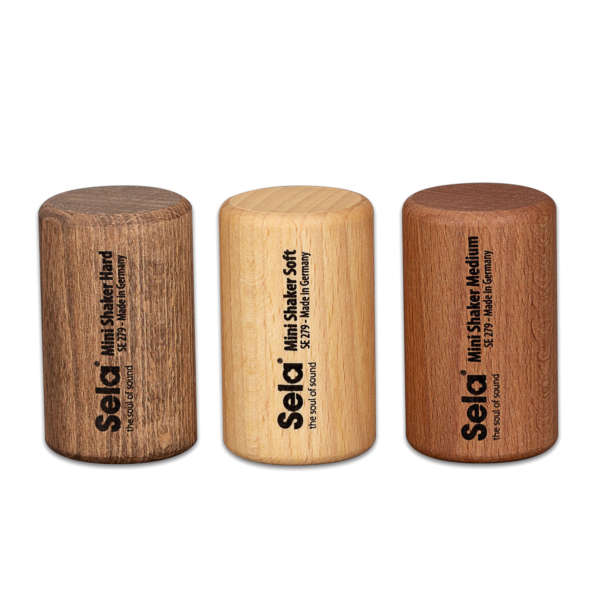 Das SELA Mini Shaker Set besteht aus drei kleinen Schüttelinstrumenten, die dank unterschiedlicher Füllungen jeweils eine andere Klangcharakteristik bieten. Die „Soft“-Variante klingt weich und dezent, das „Medium“-Modell angenehm warm und der „Hard“-Shaker etwas schärfer und akzentuierter. Die SELA Mini Shaker können nicht nur einzeln oder beidhändig, sondern dank ihrer kompakten Größe auch zu zweit oder zu dritt in einer Hand gespielt werden. Dadurch ergibt sich mit diesem Set eine Vielzahl an Kombinations- und Klangmöglichkeiten für verschiedenste musikalische Anwendungen.
