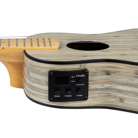 Die Sopran Ukulele Bamboo Graphit mit Tonabnehmersystem von CASCHA ist eine herrausragende Ukulele, die komplett aus hochwertigem Bambusholz besteht, welches nach höchsten Maßstäben und bestimmten Kriterien sorgfältig ausgewählt wurde. Das Natur-Holz mit ihrer markanten Graphit-Optik Maserung, dem seidenmatten Finish und den hochwertigen schwarzen Stimmmechaniken verleihen der Ukulele eine schöne, individuelle und elegante Optik.